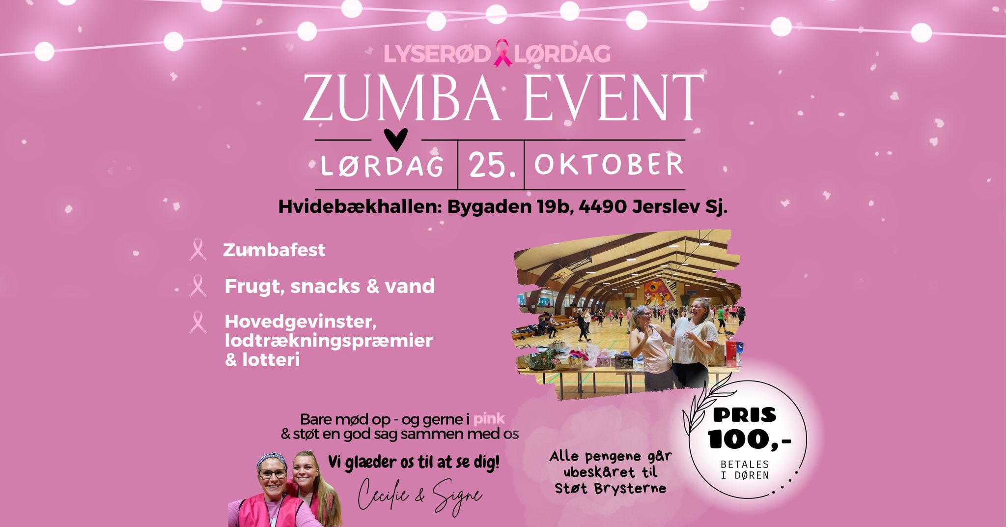 For 9. år i træk inviterer vi til et brag af et Zumbaevent – fyldt med fællesskab og formål. Igen i år samler vi ind til Støt Brysterne som en del af Lyserød Lørdag - så mød gerne op i pink.